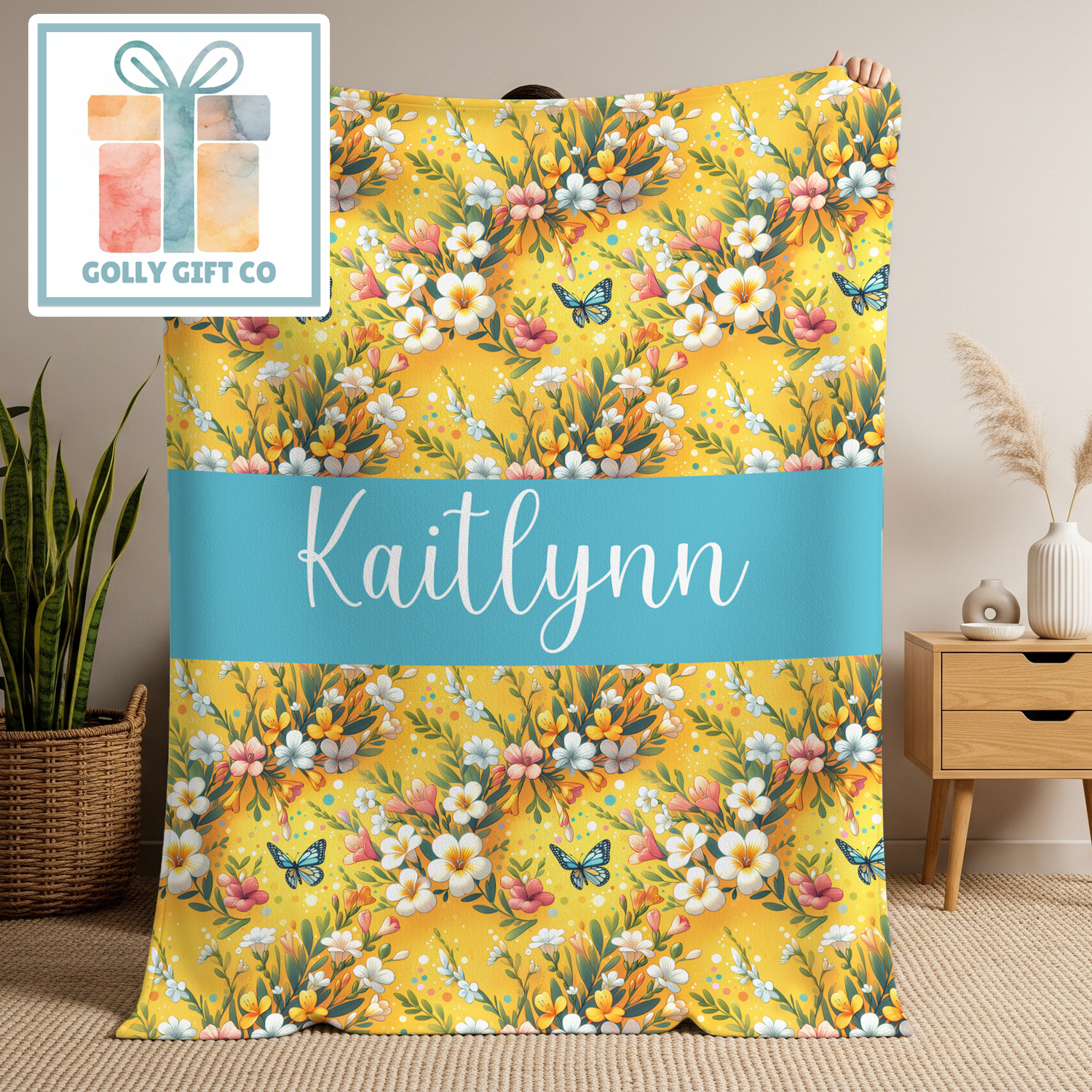 Cozy up with this luxuriously soft fleece blanket featuring a stunning floral butterfly design and a custom name banner in elegant turquoise. This isn't just a blanket—it's a personalized comfort companion that makes every snuggle session feel extra special!